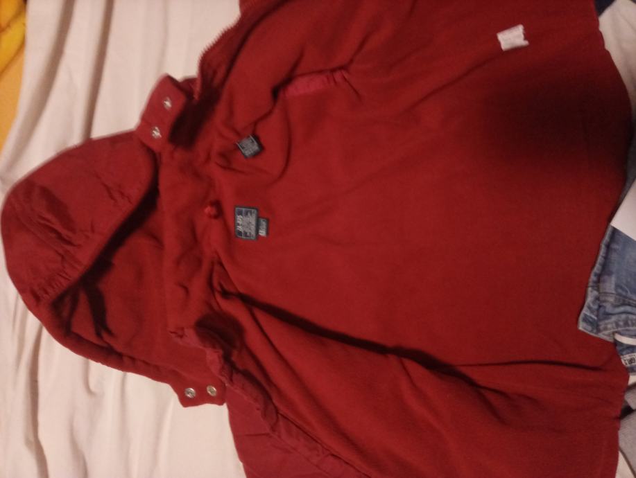 Bunda, vetrovka... Siv kapucar, 2 dolg rokav, 2 krat kavbojke, kratke hlače...