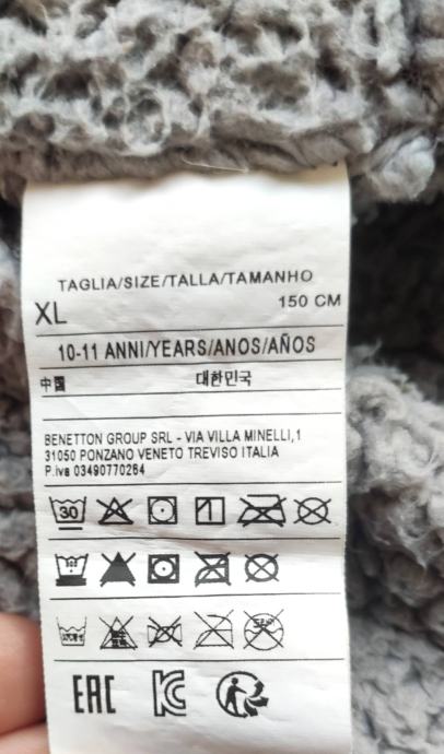 Benetton fantovska bunda s kapuco, znotraj kosmatena, topla in mehka, ima dva dvojna žepa, velikost 150cm. Bunda je bila nošena 2 sezoni.