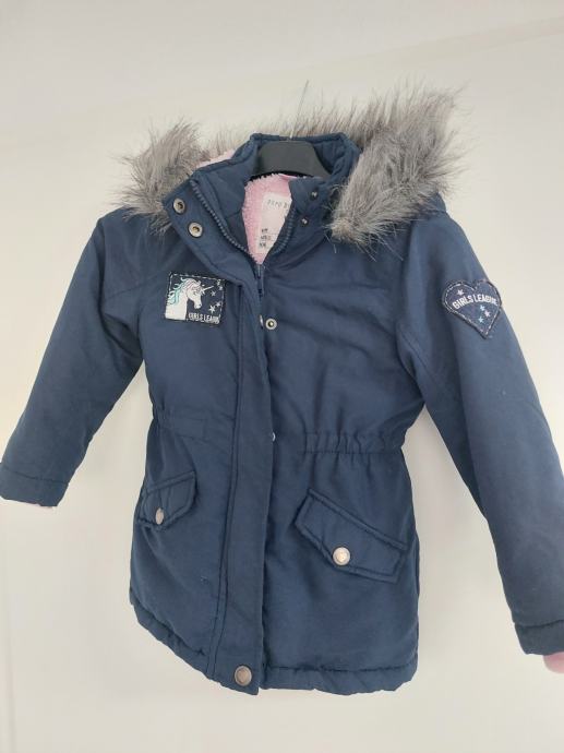 Lepo ohranjena prešita bunda s parka kapuco,v temni modri barvi št. 104. Daljši teliran model z gumo v pasu. Podložena s roza flisom. Bunda je brezhibna,rabljena samo pri eni punčki in je vedna nakupa. Vse info na 041 807 565 koroška
