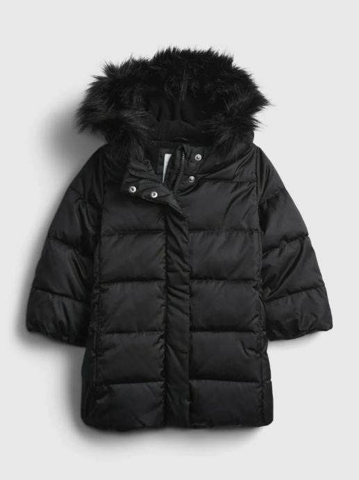 Prodam črno GAP bundico, plašč, za punčko staro 3 leta, velikost 98 in punčko staro 5 let, velikost 110.