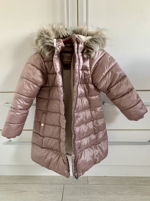 Zelo lepa in topla Next bundica, puder roza barve, z zelo bogato obrobo okoli kapuce, tudi bogato podložena, ohranjena in nepoškodovana (to je bila 1/3 bund naše dame).