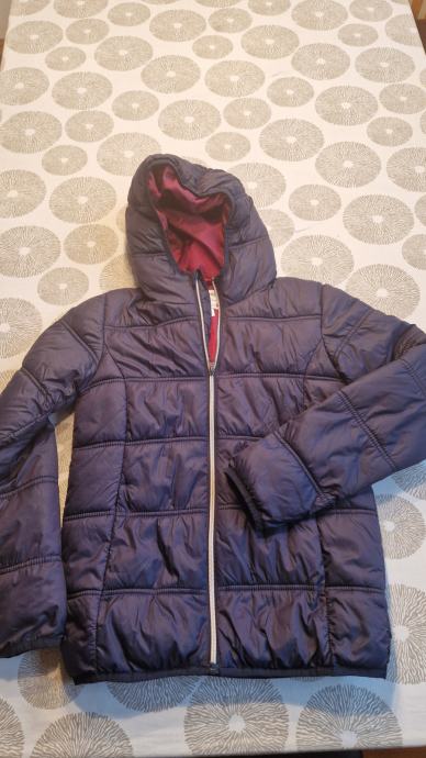 Otroška bunda modre barve z vinsko rdečo podlogo št.158.