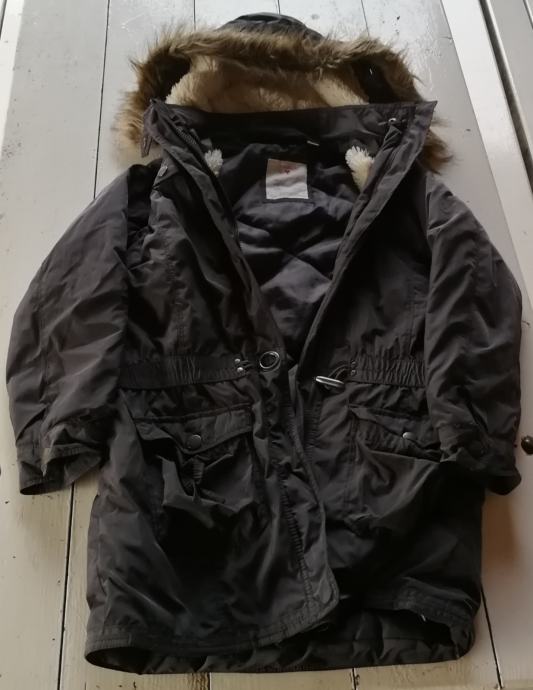 Jakna je ohranjena, grafitne barve, nikjer raztrgana, zadrge delajo, podložena z mehkim materialom, kapuca je z umetnim krznom, ki se lahko odstrani.