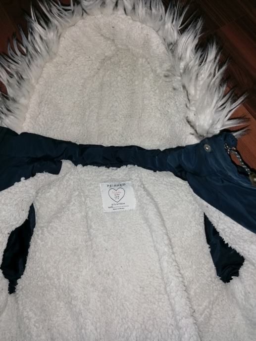 Bunda je modre barve, na kapuci ima mucko, notranji del trupa je podložen. Na rokavih je patent, v pasu pa vrvica. Je topla in primerna za zimo. Nošena je bila eno sezono. Na vaše stroške pošljem tudi po pošti.