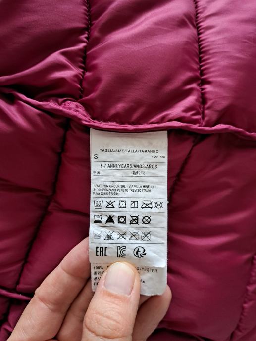 Prodam prešito bundo - daljši plašček za deklice znamke Benetton s kapuco (ni odstranljiva). Velikost je 122, kar ustreza starosti 6-7 let. Je zelo topel, polnjen s poliestrom, pralen na 30 stopinj. Je zelo lepo ohranjen, kupljen nov in nošen pri enem otroku 2 zimski sezoni (od od 5 do 7 leta) in je opran.