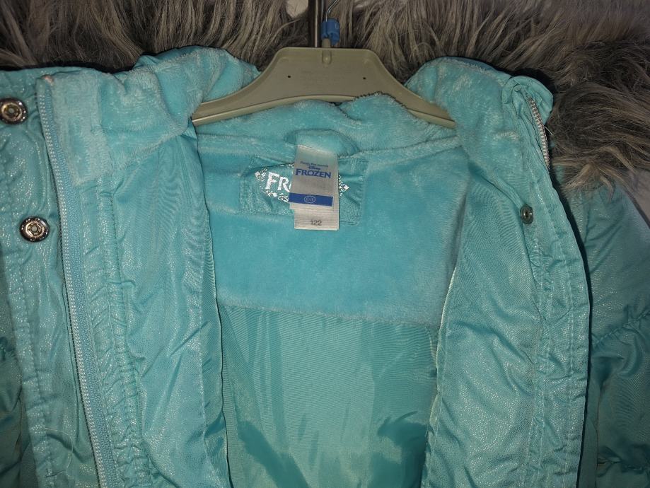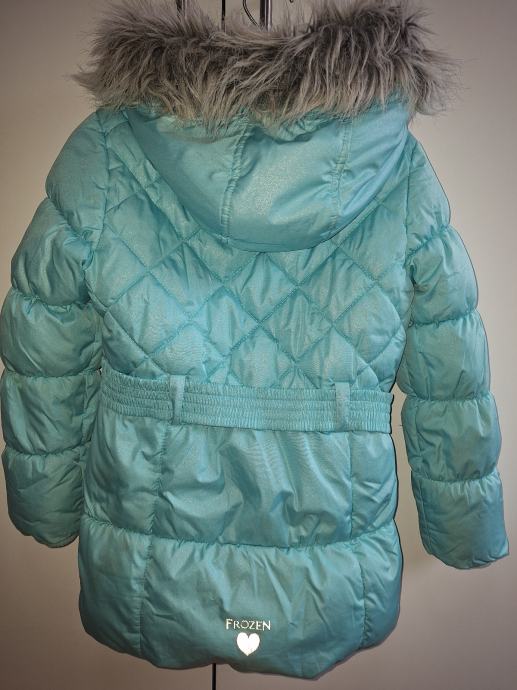 Prodam lepo ohranjeno zimsko bundico Frozen v turkizni barvi, št 122.