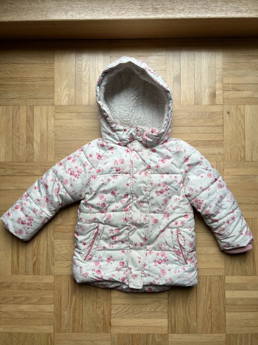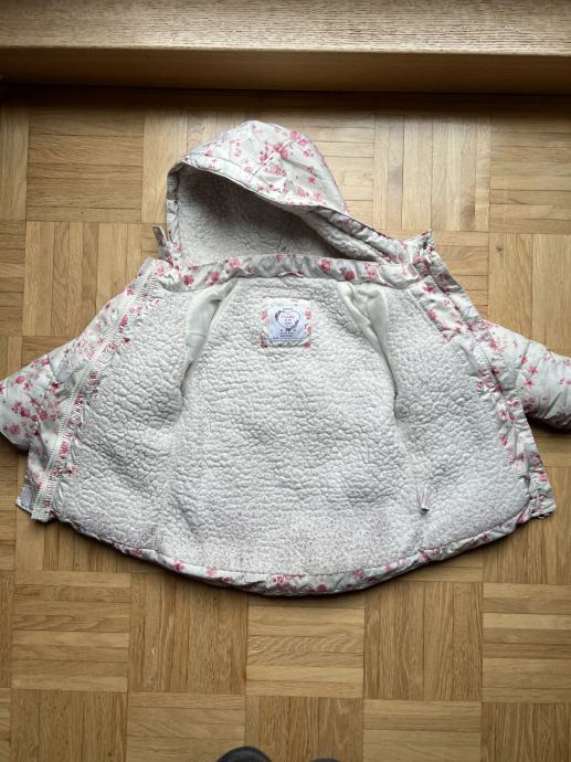 Bunda za punčke z motivom rožic, št. 92 (18-24 mes), podložena z “ovčko”.