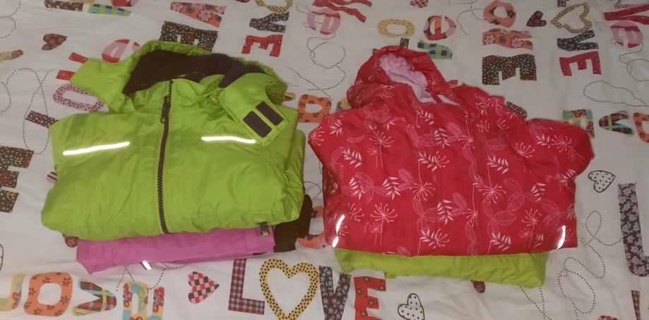 - zelene /roza smučarske hlače in zelena / roza bunda vel.86/92).... komplet 14€ (Roza hlače so malo poskodovane in umazane (ne gre proč).