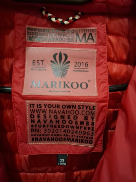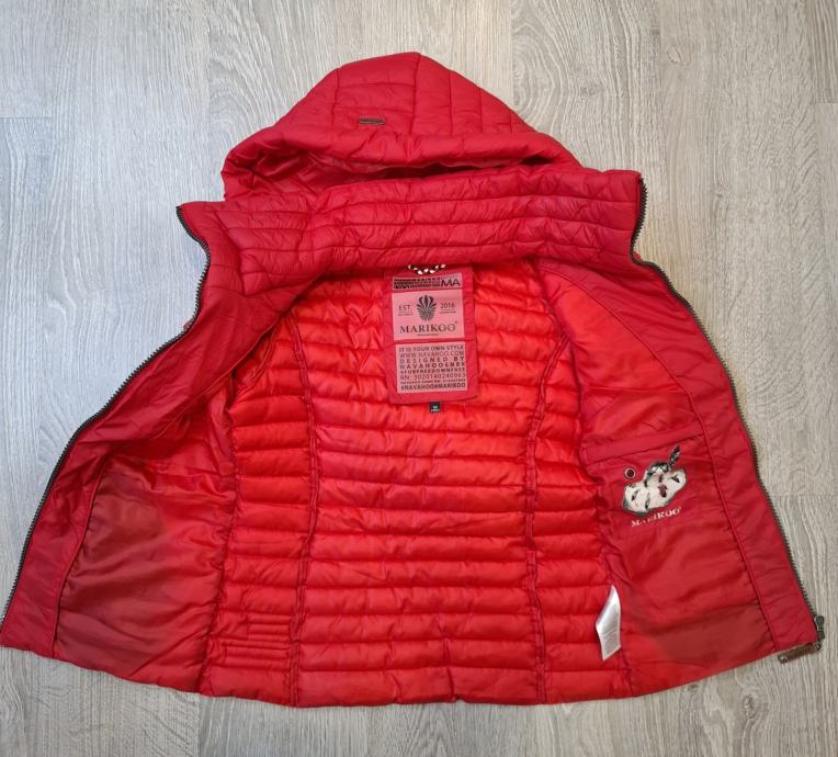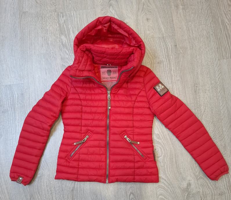 Prodam skoraj novo rdečo bundo s kapuco Marikoo vel.xs. Kupila sem premalo.