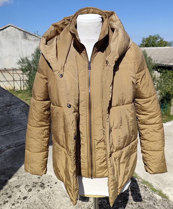 Odlično ohranjena, nič poškodovana. S toplo podlogo. Nepremočljiva. 100% poliester. Svetleče zlate barve.