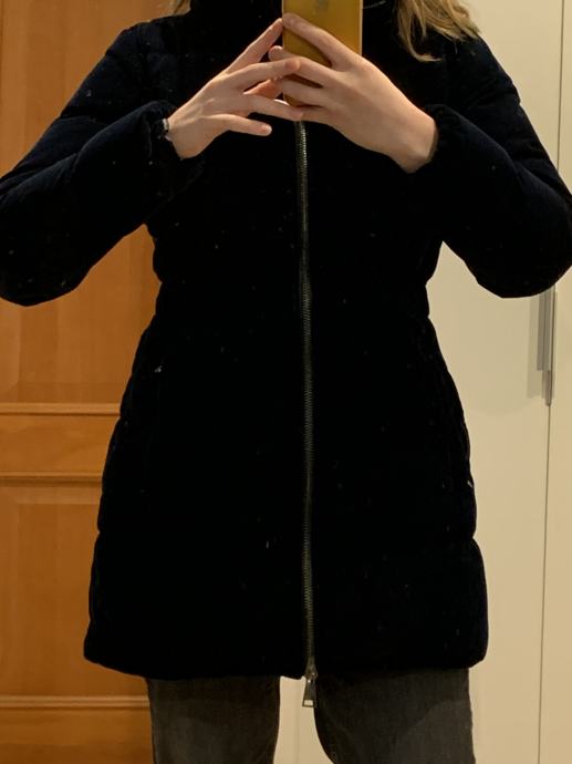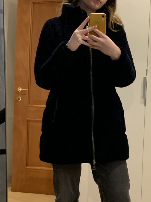 Prodam temno modro puhovko znamke Massimo Dutti. Bunda je rabljena a brez vidnih znakov nošenja. Topla. Št. S. Zunanji material je mehak, podoben semišu, znotraj je perje.
