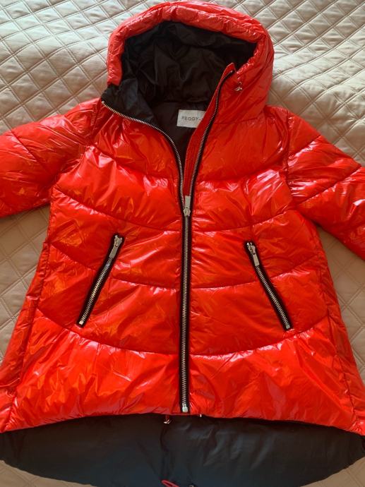 Prodam žensko bundo s kapuco, rdeče barve, ‘lakirana’, širši model - oversize, primerna za št. 38/40.