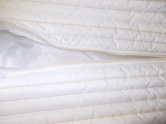Srednje topla bunda dolžine cez kolena, presita z navpičnimi okrasnimi rjavkasto-oranznimi šivi,