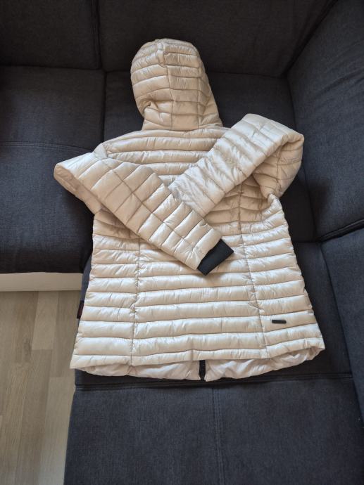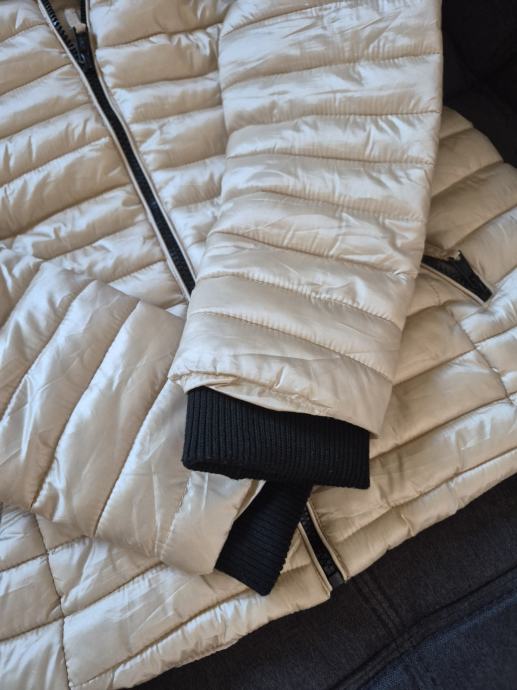 Prodajam rabljeno žensko bundo zlate barve v velikosti 42 znamke Marikoo. Bunda je topla, s prešitim vzorcem in kapuco za dodatno zaščito pred mrazom. Primerna je za zimske dni in ima praktične žepe s stranskimi zadrgo.Bunda je kot nova.