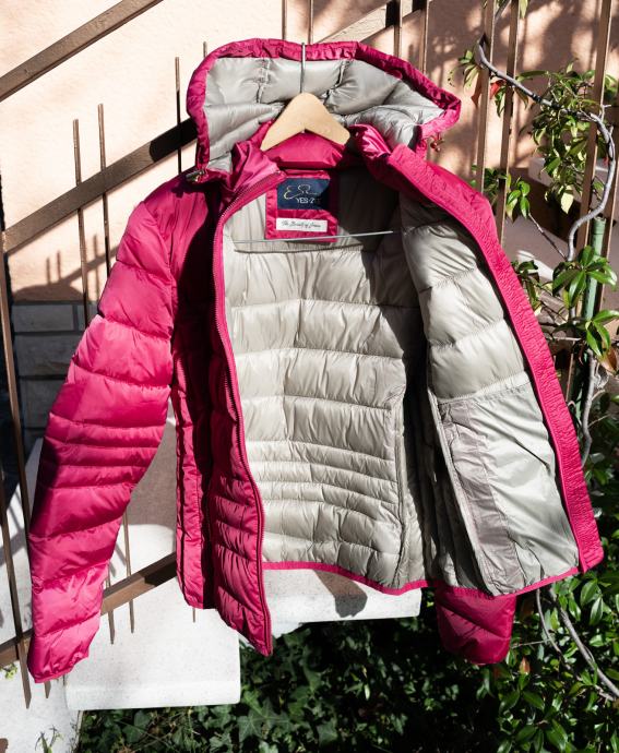 Peodam žensko/dekliško zimsko jakno puhovko znamke YES ZEE The beauty of jeans. Velikost: M : dolžina 62 cm, širina ramen (od rokava do rokava) 41 cm, obseg prsi 85 cm, dolžina rokava 65 cm. Kapuca, 2 zunanja + 2 notranja žepa. Kovinske zadrge. Nova, nenošena, z etiketo (darilo - mi je premajhna). Cena nove: 97 evr.