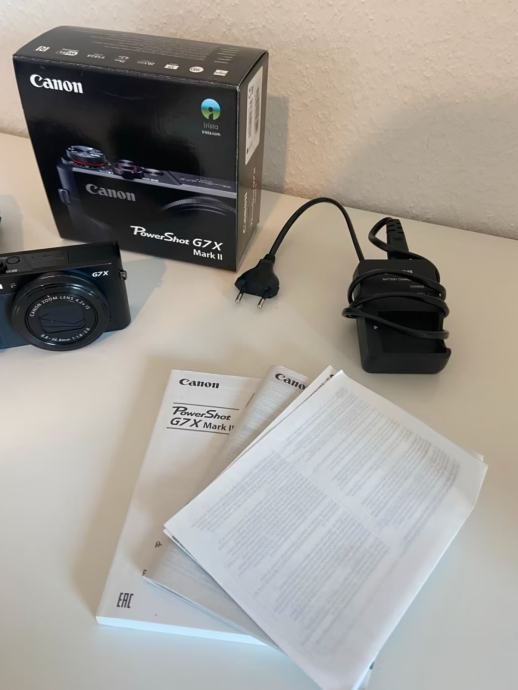 Prodajam Canon PowerShot G7 X Mark II. Kamera je idealna za visokokakovostne fotografije in Full HD videoposnetke (do 60 sličic na sekundo), popolna za vloganje, potovanja in vsakodnevno uporabo. Velik 1-palčni senzor in hitra leča (f/1.8 - f/2.8) zagotavljata odlične rezultate tudi pri šibki svetlobi. V kompletu so Canon PowerShot G7 X Mark II s originalno baterijo, polnilec, originalna škatla z navodili ter torba za fotoaparat.