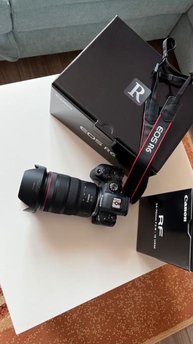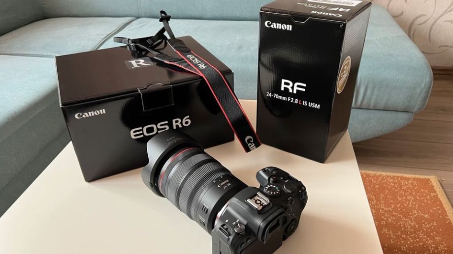 Fotoaparat in objektiv imata garancijo do leta 2026, priložen je garancijski račun. Super fotoaparat Canon EOS R6 z objektivom 24-70, 6000 posnetkov, deluje brezhibno, v odličnem stanju, zaslon zaščiten z neprebojnim steklom, stanje kot nov!