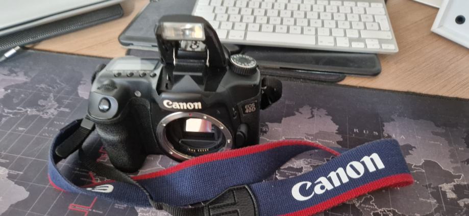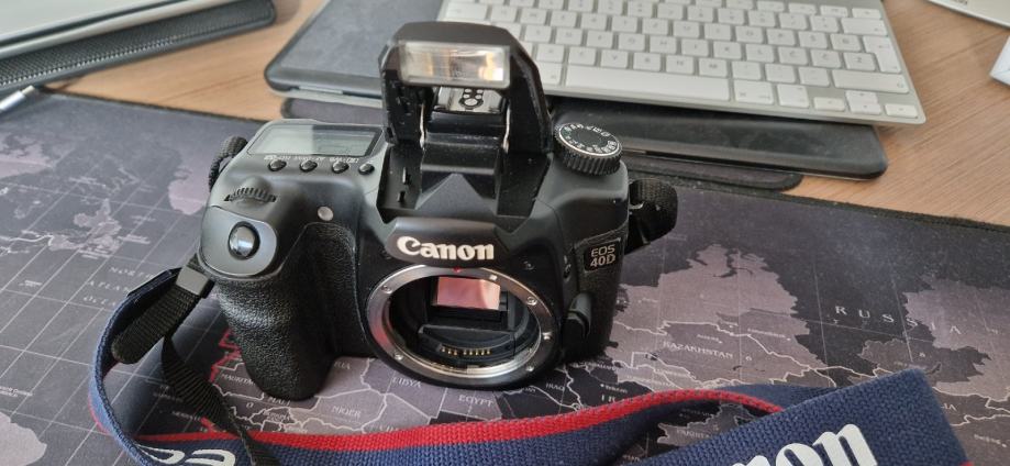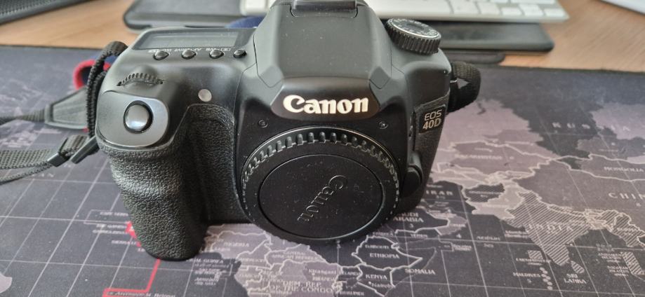 Canon EOS 40D. Lepo ohranjen. Zraven pripadajoča oprema pas, polnilec, dve bateriji in spominska kartica 2GB. Izdelanih dobrih 42k proženj, kar ke razvidno tudi iz slik.