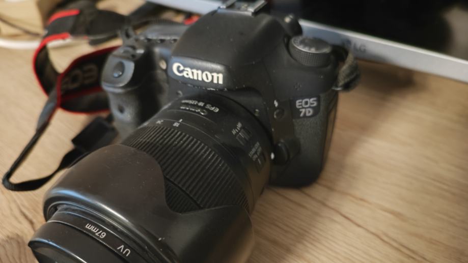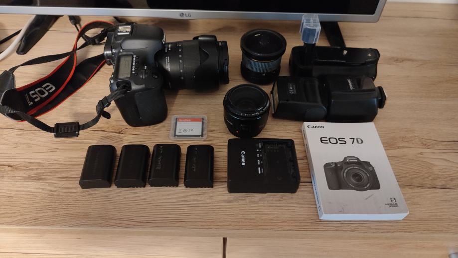 Prodam solidno ohranjen digitalni zrcalno refleksni fotoaparat Canon EOS 7D. Polek so trije objektivi, 18-135mm, 50mm in fisheye, fleš, grip za dodatne baterije in z gumbi glavnih funkcij, polnilec, 4 baterije in 2 spominski kartici. Prodaja se samo v kompletu!