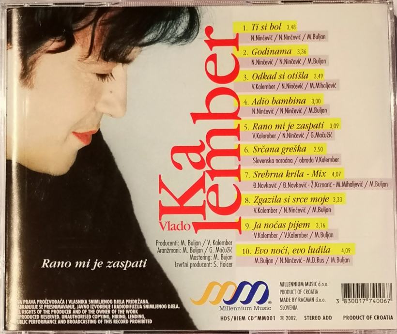 030 VLADO KALEMBER - RANO MI JE ZASPATI, 1x CD, POP, hrvaška glasba
