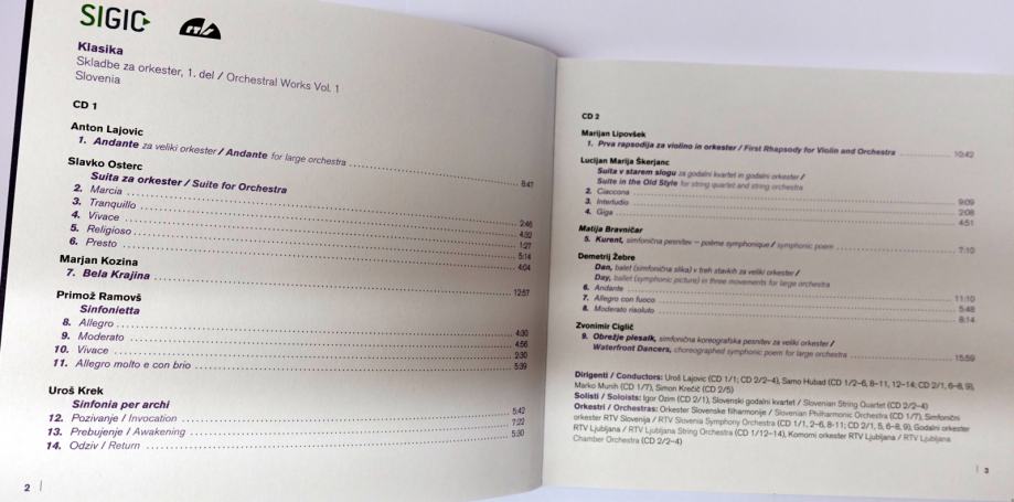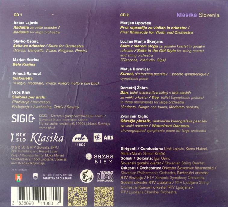 Orkestri: Orkester Slovenske filharmonije, Simfonični orkester RTV Slovenija, Godalni orkester RTV Ljubljana, Komorni orkester RTV Ljubljana