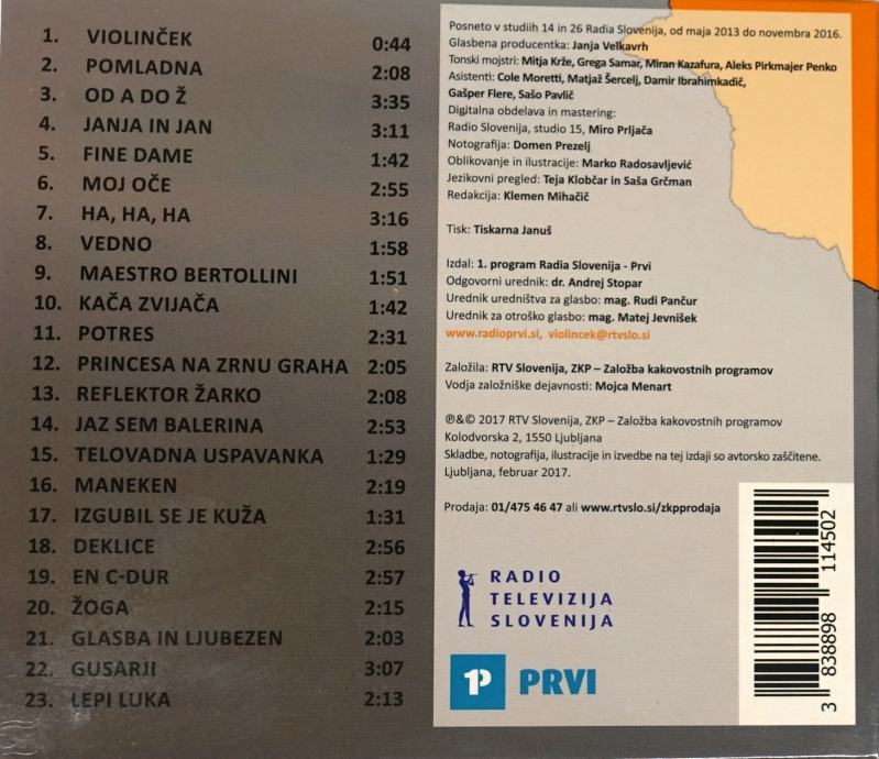 VIOLINČEK 2017, 23 otroških pesmi + instrumentali