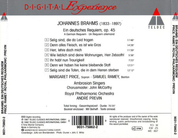 Brahms, Margaret Price, Samuel Ramey, Ambrosian Singers, Royal Philharmonic Orchestra, André Previn – Ein Deutsches Requiem