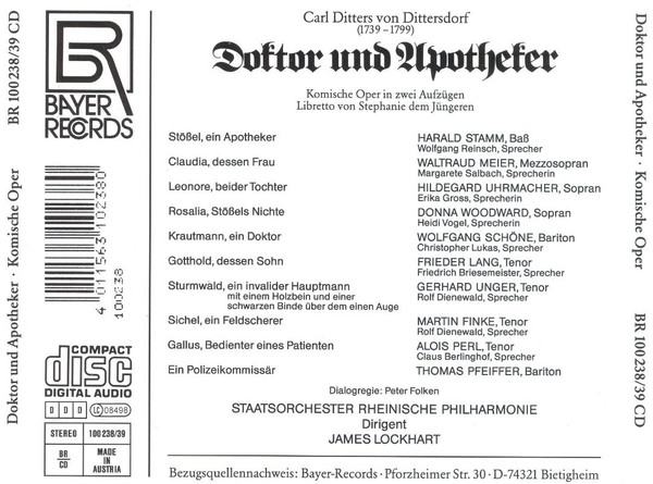 Carl Ditters von Dittersdorf - Harald Stamm • Waltraud Meier • Hildegard Uhrmacher • Donna Woodward • Wolfgang Schöne • Frieder Lang • Gerhard Unger • Martin Finke • Alois Perl • Thomas Pfeiffer • Staatsorchester Rheinische Philharmonie, James Lockhart – Doktor Und Apotheker