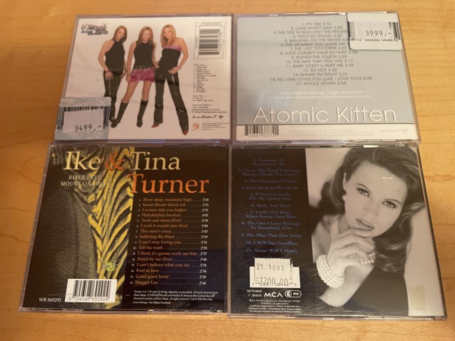 CD 4X ATOMIC KITTEN, IKE & TINA TURNER, SHENA EASTON, zelo dobro ohranjene. Občasno možen prevzem na relaciji Zreče-Ljubljana. Tel.: 070 794 698.