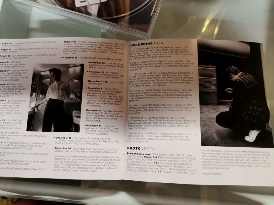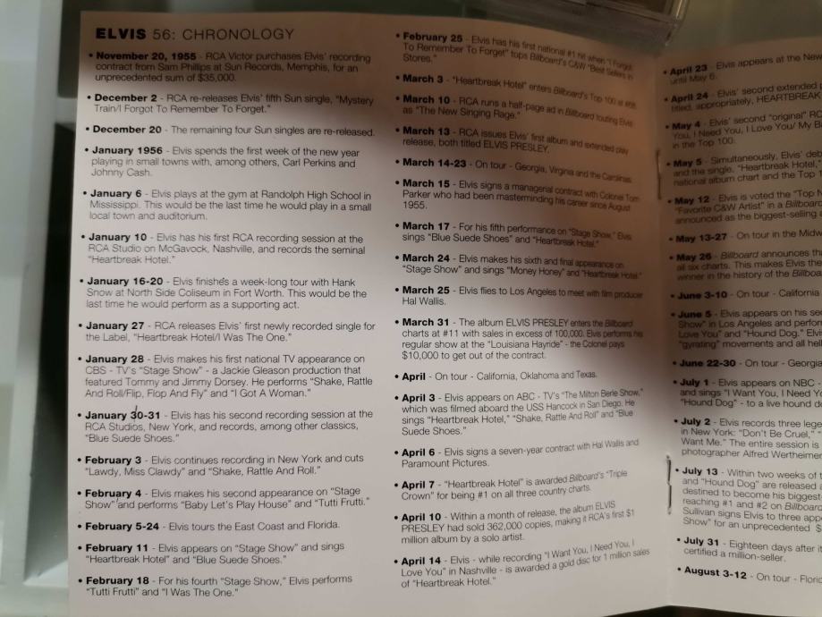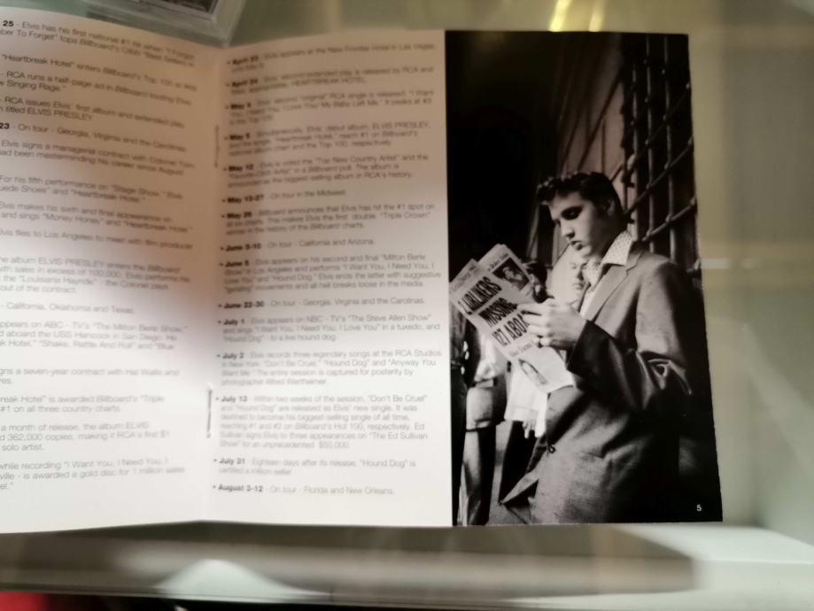 Z vložno knjigico na kateri je napisana kronologija pomembnejših Elvisovih dogodkov...