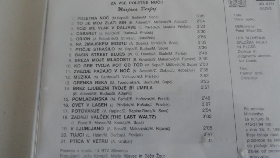 CD - MARJANA DERŽAJ - ZA VSE POLETNE NOČI
