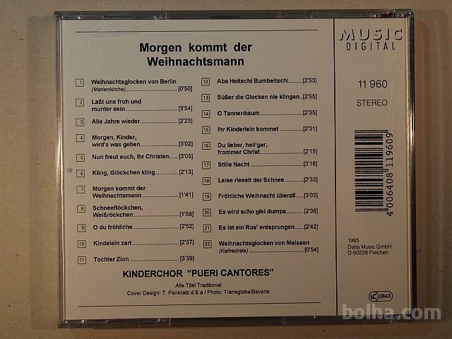 CD - MORGEN KOMMMT DER WEIHNACHTSMANN, (Jutri bo prišel Božiček), najlepše božične pesmi v izvedbi otroških zborov - nemških, 22 komadov. CD je kot nov.