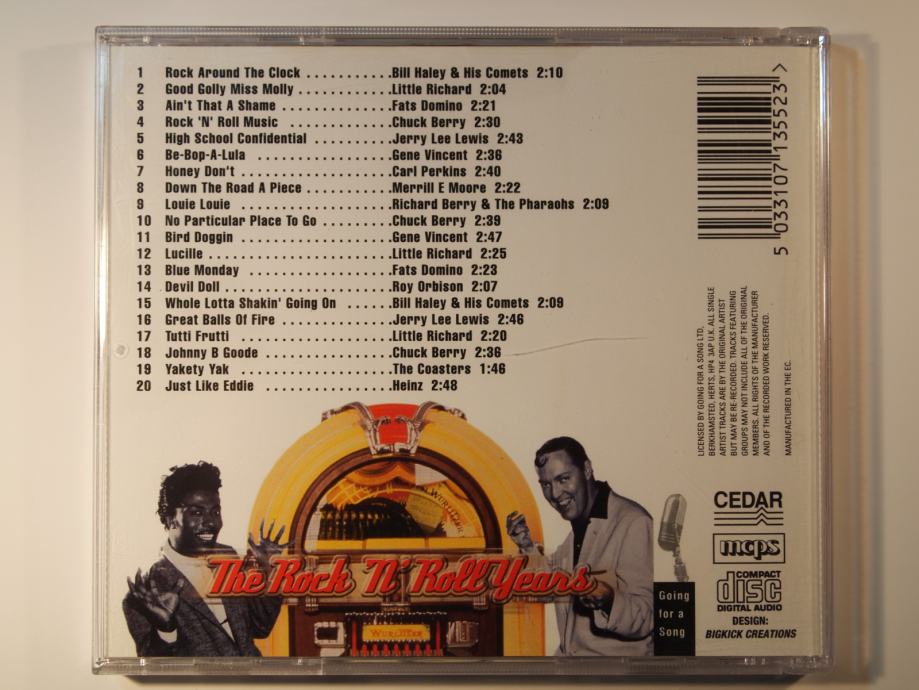 CD, THE ROCK N ROLL YEARS, Bill Haley & His Comets - Rock Around Te Clock, Little Richard - Tutti Frutti, -----.