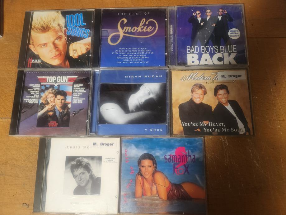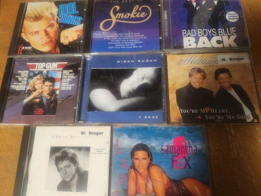 Prodam odlično ohranjene CD-je na sliki.MODERN TALKING, SAMANTHA FOX,MIRAN RUDAN,BAD BOYS BLUE,SMOKIE,BILLY IDOL,CHRIS DE BURGH,TOP GUN