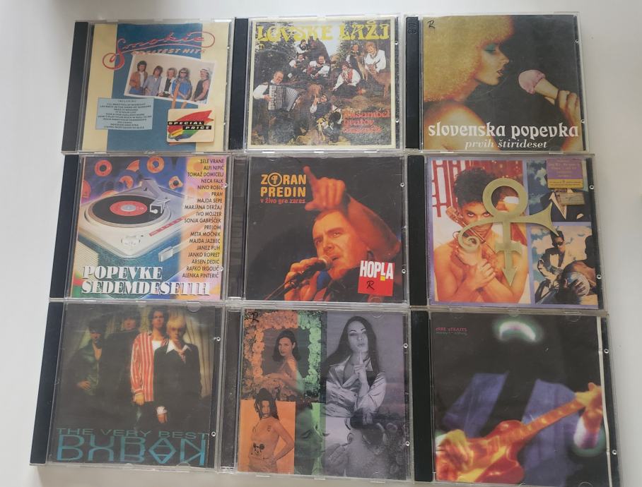 Prodam ohranjene CD-je na sliki. ANJA RUPEL,PRINCE,ZORAN PREDIN,AVSENIK,SLOVENSKA POPEVKA,DIRE STRAITS,SMOKIE,DURAN DURAN