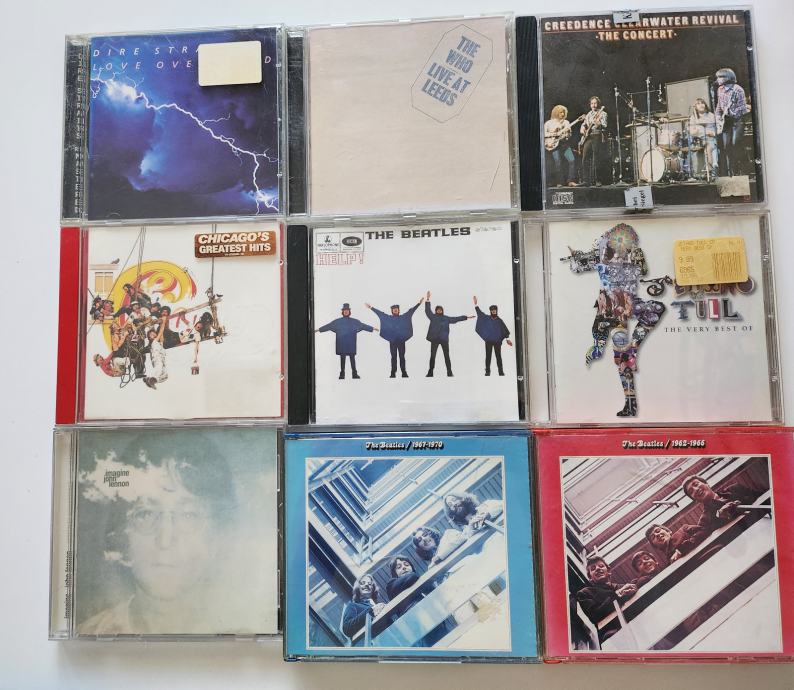 Prodam odlično ohranjene CD-je na slikah. Posamezen cd od 10 - 30€.PLAVI ORKESTAR, MODERN TALKING,NIRVANA,CCR ,BEATLES,DIRE STRAITS.....