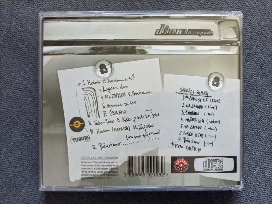 Odličen studijski album legendarne hrvaške zasedbe Jinx. Poleg studijskega cd albuma je priložen bonus cd z živimi posnetki vseh singlov z albuma Na zapadu in nalepke, ki spadajo k albumu. Seznam pesmi je viden na drugi sliki.