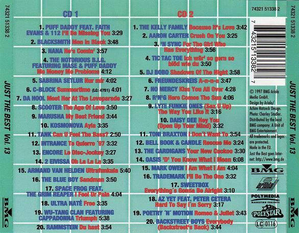 Dvojna glasbena kompilacija Just The Best Vol. 13 iz leta 1997 je zelo dobro ohranjena. Zadnji ovitek (back cover) je faksimile originala (barvna kopija). Osebni prevzem v CE ali po pošti. Za dodatne informacije kličite na 040 517 706.