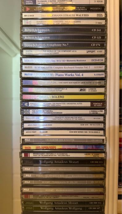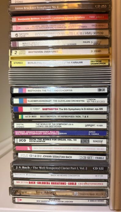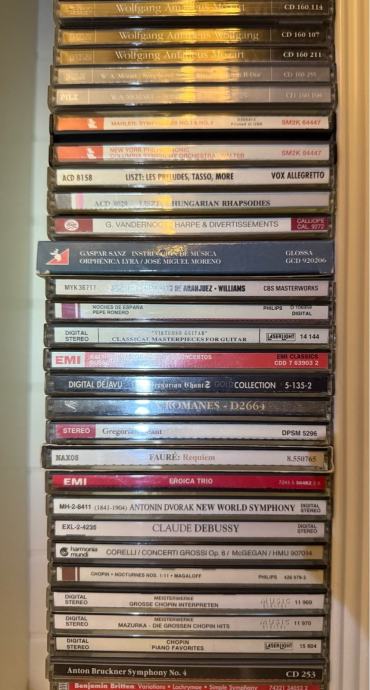 Širok izbor klasičnih CD-jev vrhunskih mednarodnih izvajalcev. CD-ji so v odličnem stanju. Od gregorijanskih koralov do del za solo kitaro, od sonat do oratorijev, od koncertov do komorne glasbe, od srednjega veka do skladateljev dvajsetega stoletja. Samo 2 € na CD.