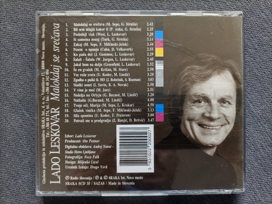 Prodam rabljen, lepo ohranjen cd LADO LESKOVAR - Malokdaj se srečava.