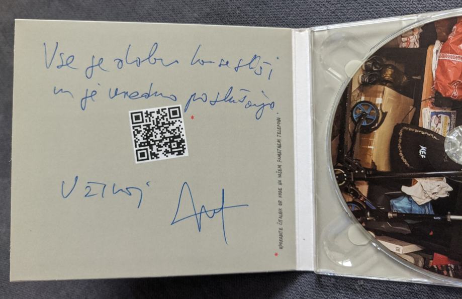 Album ima posvetilo in podpis. Seznam pesmi je viden na drugi sliki.