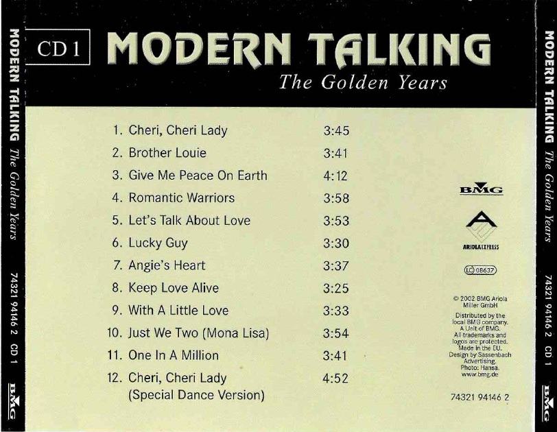 Prodam cd kompilacijo Modern Talking – The Golden Years [cd1] ki vsebuje največje glasbene uspešnice nemške skupine Modern Talking. Osebni prevzem v CE ali po pošti. Za več informacij kontaktirajte po e-pošti.