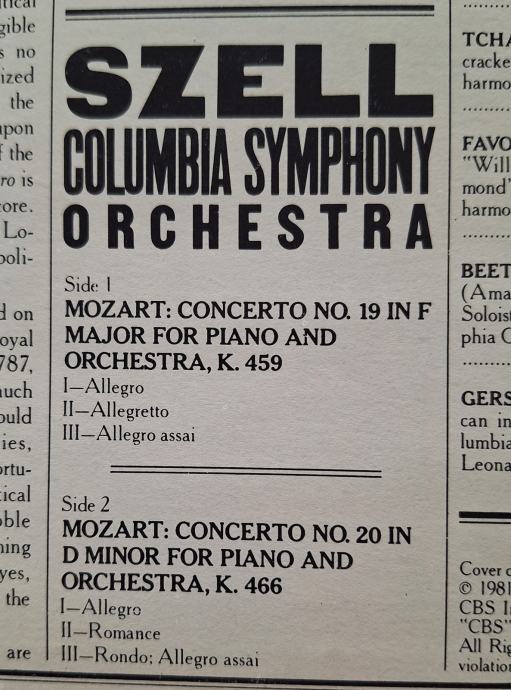 Prodam LP ploščo (vinil) in CD ploščo na katerih je šest koncertov za klavir in orkester skladatelja Wolfganga Amadeusa Mozarta in sicer št. 1, 2, 3, 4, 19, 20. Več podrobnosti o vsebinah plošč je razvidnih na priloženih fotografijah. Plošči sta brez napak. Cena za vsako ploščo je 15 eur, prodam skupaj ali posamično. Če želite dostavo po pošti se doda še 4 eur poštnine. Info 041 643 431. Prodam tudi še druga dela od Mozarta in tudi od večih drugih skladateljev iz obdobja klasicizma in romantike. Pokličite za podrobnosti.