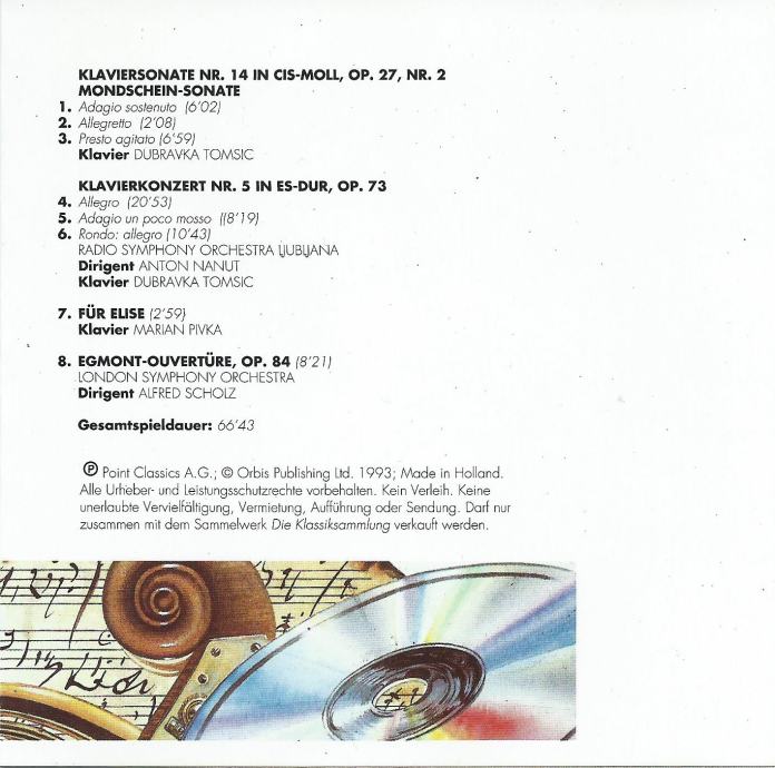Glasbena zbirka klasične glasbe "Die Klassiksamlung" je bila izdana leta 1993 pri založbi De Agostini v Nemčiji. Osebni prevzem v CE ali po pošti. Za več informacij pokličite 040 517 706.