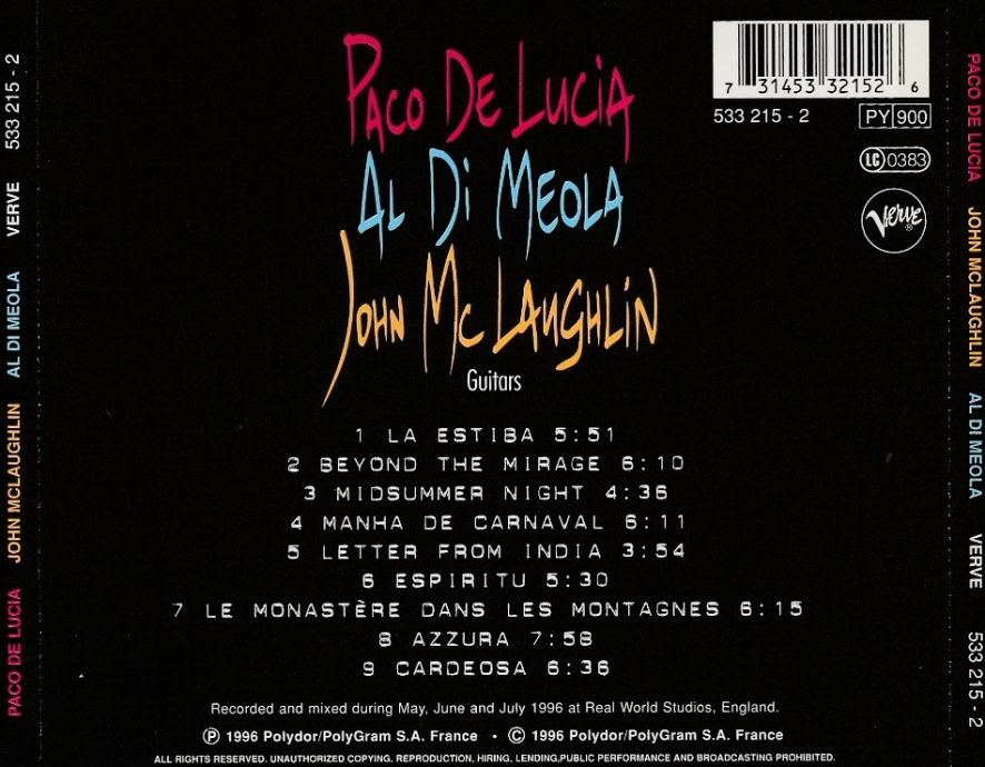 Paco De Lucía, Al Di Meola, John McLaughlin – The Guitar Trio (CD)