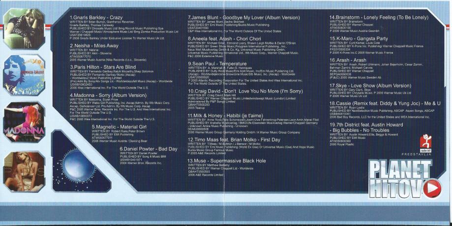 Prodam kompilaciijo Planet Hitov - Hitova budilka 2007. Cedejka je odlično ohranjena. Osebni prevzem v CE ali po pošti. Za več infromacij kontaktirajte 040 517 706