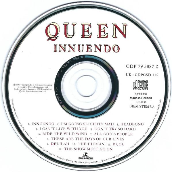 Originalna cedejka od skupine Queen iz leta 1991. Osebni prevzem v CE ali po pošti. Prednji ovitek je barvna kopija originala.
