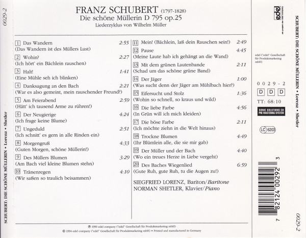 Franz Schubert, Siegfried Lorenz, Norman Shetler – Die Schöne Müllerin Op. 25 D 795