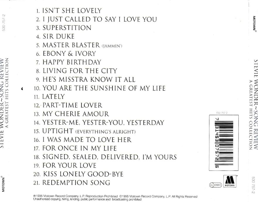 Stevie Wonder – Song Review - A Greatest Hits Collection (CD)