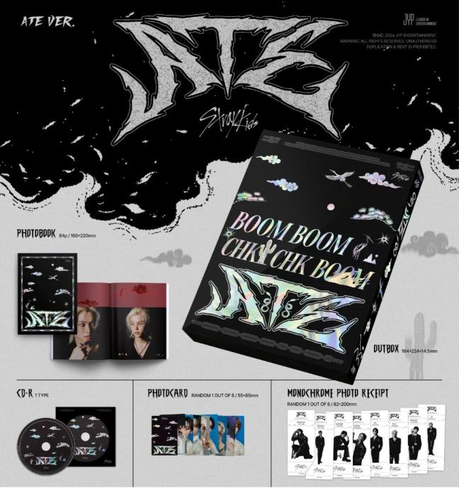 Prodajam album ORIGINALNI album ATE, zadnji izdani album fantovske skupine Stray Kids iz Južne Koreje. Z pesmijo Chk Chk Boom, ki je tudi na ATE albumu so dosegli nov mejnik v svoji karieri, saj je pesem debitirala na uradni UK lestvici singlov in se uvrstila na 30.mesto. S tem se je skupina prvič pojavila na lestvici top 40 v Veliki Britaniji, ki je na ameriški Billboardovi lestvici Hot 100.
